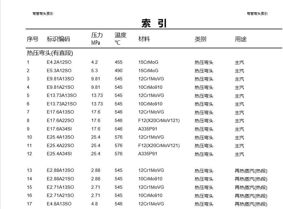 看到這個(gè)這個(gè)這個(gè)規(guī)格型號(hào),然后比如說(shuō),熱壓彎頭有直段,一是E4.2a12so。這樣的一個(gè)標(biāo)識(shí)是什么意思呢?就是指它的壓力是4.2兆帕。然后它所適用的溫度450度,不對(duì),是455度這個(gè)意思。